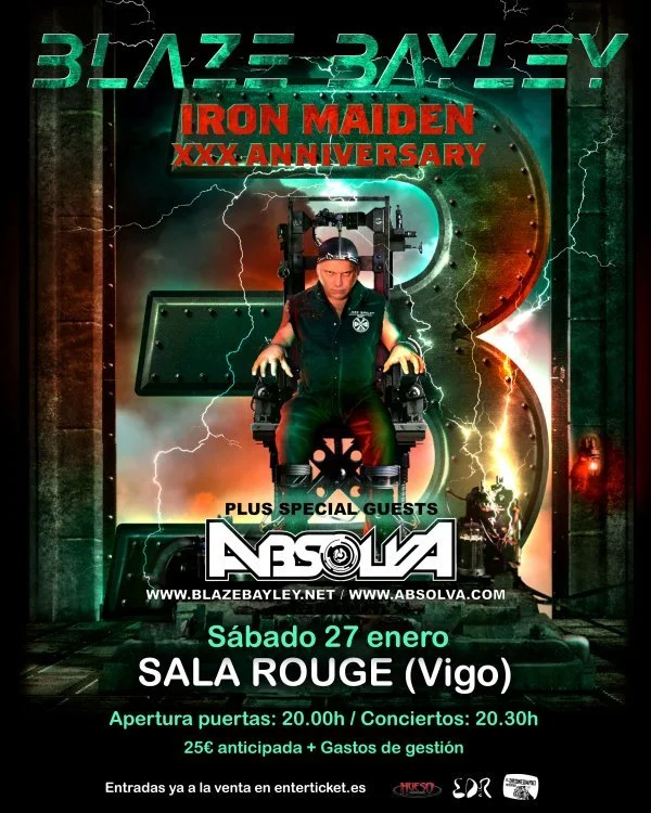 BLAZE BAYLEY - "IRON MAIDEN XXX ANNIVERSARY" sábado, 27 de enero de 2024 20:30 22:30 Sala Rouge, Vigo. 4 Rúa de Pontevedra Vigo, 36201 España (mapa) Google Calendar ICS BLAZE BAYLEY - "IRON MAIDEN XXX ANNIVERSARY"Concierto de Blaze Bayley, ex-vocalista de Iron Maiden entre los años 1994-1999, a través de su tour “Iron Maiden XXX Anniversary”, junto a su banda actual, en la Sala Rouge, Vigo.Como grupo invitado, estará la banda británica Absolva.🔗 Información del concierto🔗 blazebayley.netInstagrams: @blazebayleyPrecio: 25,00 € enterticket.es 🕖: 20:30 h 📍Rúa Pontevedra, 4.