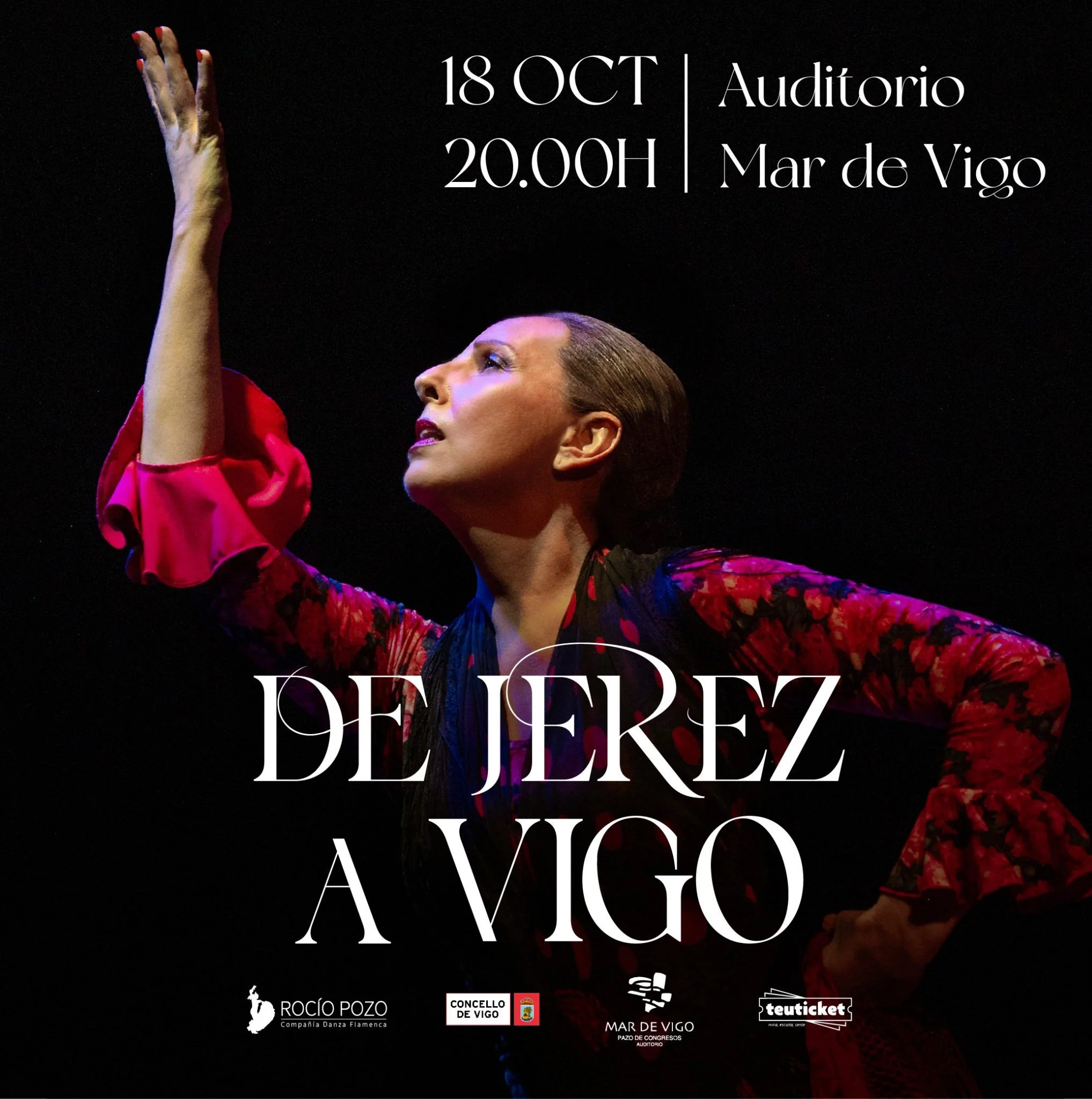 "DE JEREZ A VIGO" sábado, 18 de octubre de 2025 20:00 21:00 Auditorio Mar de Vigo. 59 Avenida da Beiramar Vigo, 36202 España (mapa) Google Calendar ICS "DE JEREZ A VIGO"Espectáculo de flamenco, un homenaje a Lola Flores y a las grandes voces de Galicia, como Rosalía de Castro y Emilia Pardo Bazán, a través de Rocío Pozo Compañía Danza Flamenca, en el Auditorio Mar de Vigo.🔗 Información del espectáculo🔗 flamencorociopozo.comInstagrams: @flamencorociopozo @auditoriomardevigoPrecio: Entre 25,00 € a 35,00 € en teuticket.com🕖: 20:00 h📍Av. Beiramar, 59.